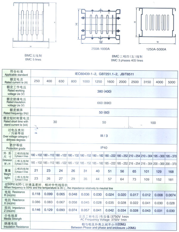BMC-2F(KFM)系列母線槽適用于交流三相四線,三相五線制.頻率50-60H2。額定工作電流250-5000A的供配電系統,承擔配電任務,用于低壓配電屏與大、中型負載的連接。作為大電流的輸電,用于電力變壓器與低壓配電屏以及重型負載的連接。主要應用于現代化的車間、汽車制造廠電機制造業的電焊線,工業用電爐廠房和高層建筑等。